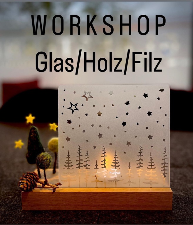 Im W o r k s h o p gestaltet ihr zuerst die Glasscheibe ganz nach euren Vorstellungen. Anschließend zeigen wir euch Schritt für Schritt, wie ihr die kleinen Bäumchen und Sterne für eure Holzleiste filzt :)